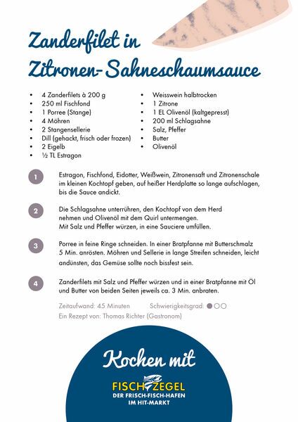 Zanderfilet in Zitronen-Sahneschaumsauce